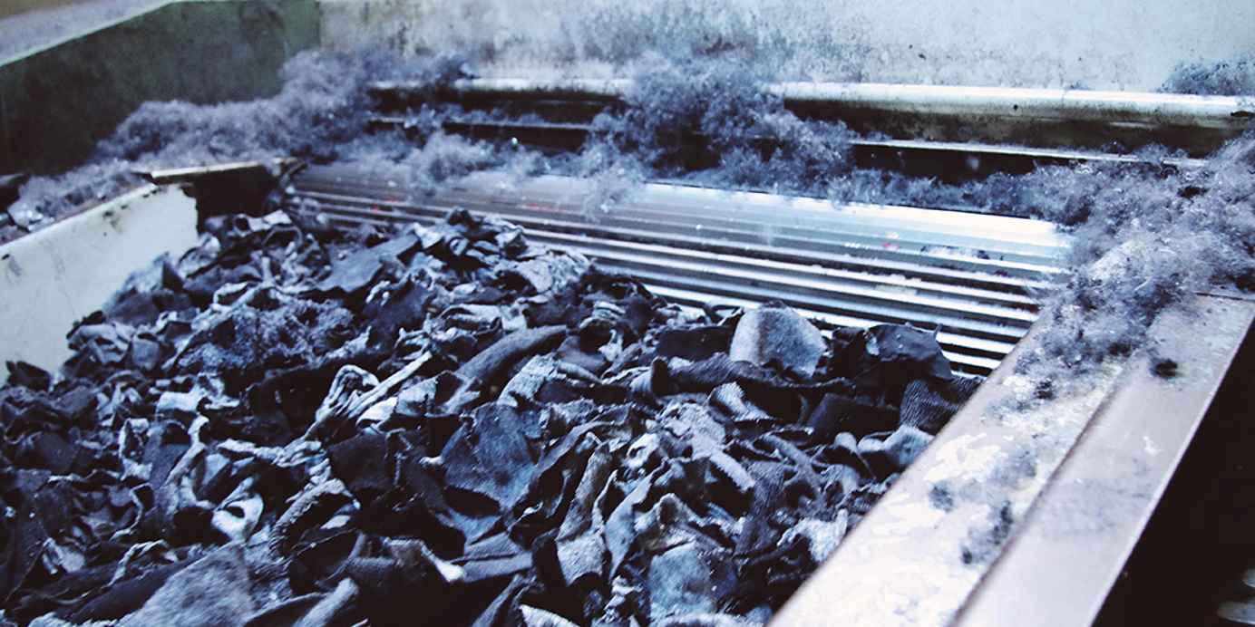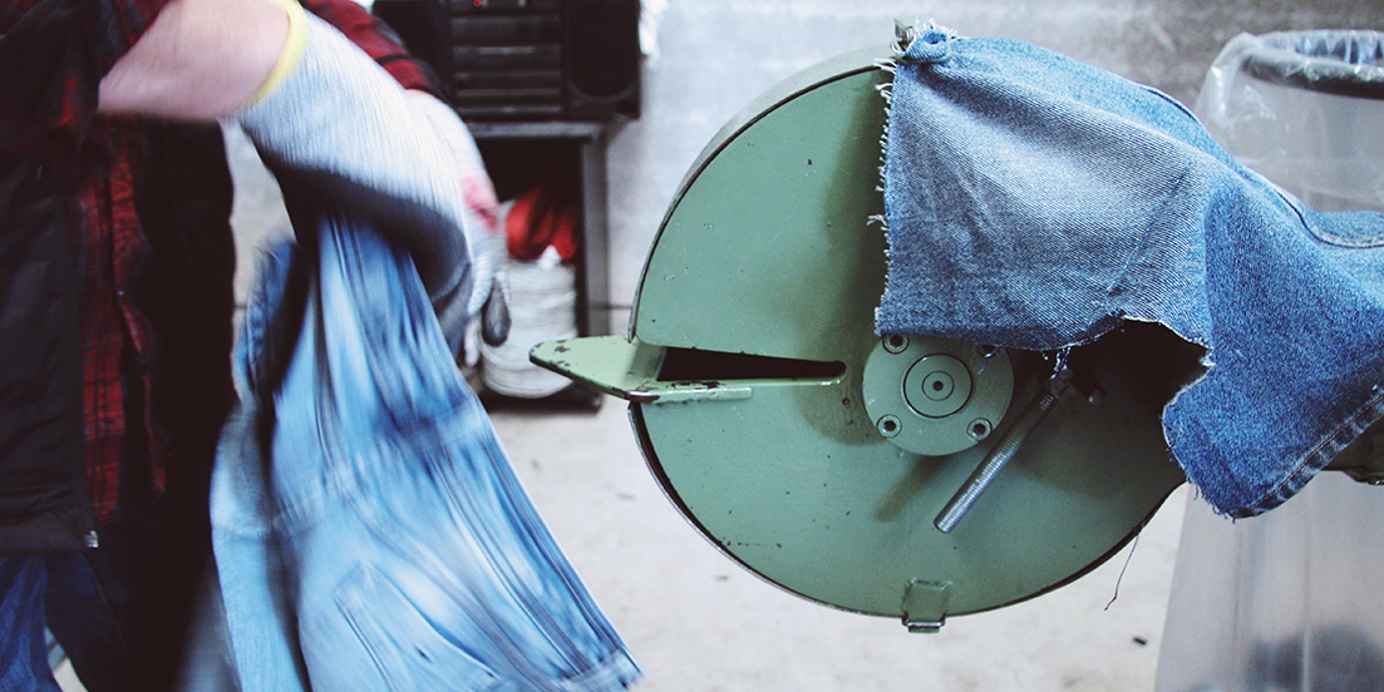 Gebruikte jeans worden gerecycled in de fabriek in Valencia